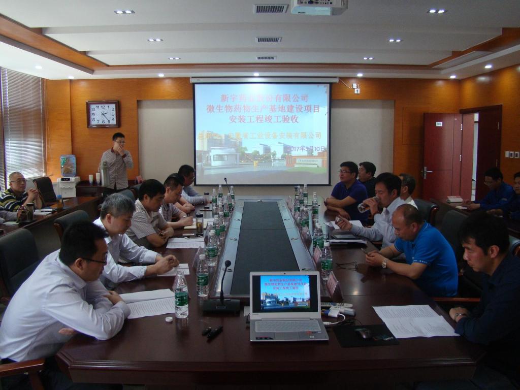 2017年5月10日下午,新宇藥業(yè)微生物藥物生產(chǎn)基地項(xiàng)目安裝工程竣工驗(yàn)收會(huì)議在新宇藥業(yè)股份有限公司召開(kāi),新宇藥業(yè)股份有限公司總經(jīng)理萬(wàn)曉飛、總工程師朱立元、總會(huì)計(jì)師蔣峰、項(xiàng)目總指揮李利、副總指揮李民、陳海軍以及相關(guān)部門同志參加會(huì)議,安徽安裝公司黨委書記胡六中、副總經(jīng)理劉安俊、紀(jì)委書記李寬旭、總會(huì)計(jì)師張?jiān)?、總工程師吳繼成等應(yīng)邀出席。