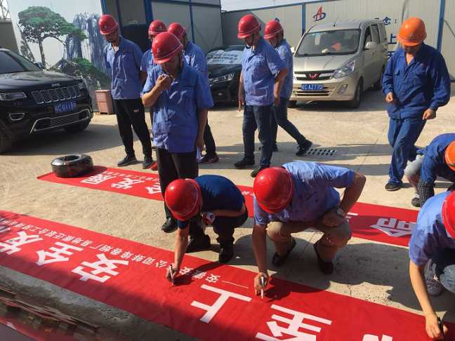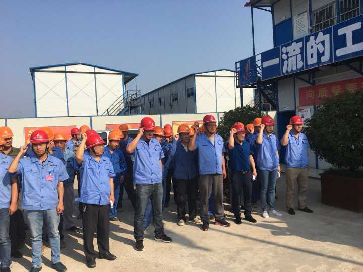 隨著儀式的展開,分公司副經(jīng)理張漢軍帶領(lǐng)全體人員進行了莊嚴(yán)的安全宣誓。接著,分公司總工程師梁興邵現(xiàn)場進行安全知識宣講,分公司工會主席、項目臨時黨支部書記程茂麗隨后宣讀了《關(guān)于在安徽中煙蚌埠卷煙廠項目部開展“中煙項目干勁足 安全生產(chǎn)爭先鋒”勞動競賽活動的通知》。最后,項目執(zhí)行經(jīng)理郭洋代表項目部表態(tài)發(fā)言:一定會以本次活動為契機,加強現(xiàn)場安全管理,努力提升項目安全管理水平再上新臺階。