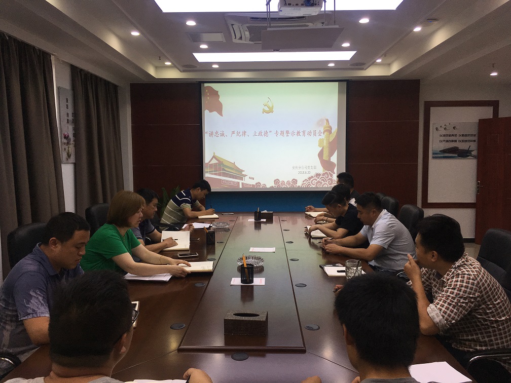 6月20日下午,安慶分公司黨支部召開(kāi)了“講忠誠(chéng)、嚴(yán)紀(jì)律、立政德”專題警示教育動(dòng)員擴(kuò)大會(huì)議,分公司全體員工參加動(dòng)員會(huì)。