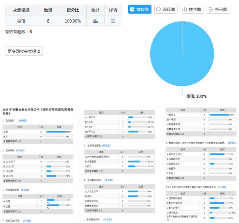 隨后,為進一步深入了解青年員工思想、工作、生活狀況,根據(jù)新時期青年思想特點,結(jié)合分公司實際情況,團支部利用手機微信掃碼方式在會議現(xiàn)場對每位青年員工進行了思想狀況調(diào)查。團支部將根據(jù)統(tǒng)計分析報告,針對大家所需所想,廣泛開展形式多樣、內(nèi)容豐富的集體活動。