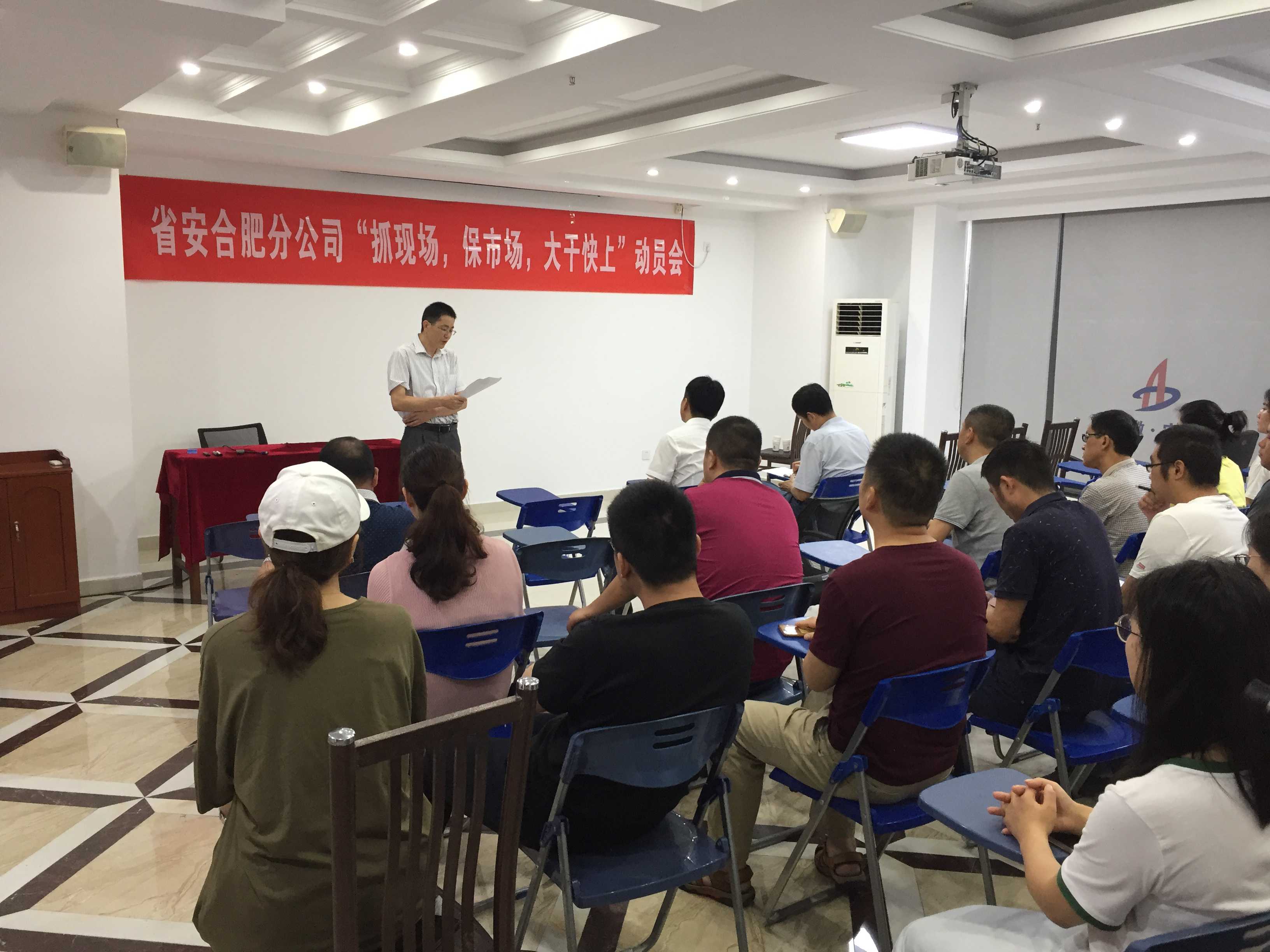 合肥分公司積極響應(yīng)公司的號(hào)召,2019年6月19日上午,分公司組織機(jī)關(guān)全體人員和合肥地區(qū)項(xiàng)目經(jīng)理及項(xiàng)目管理人員共計(jì)30余人在公司15樓職工之家召開(kāi)了“抓現(xiàn)場(chǎng)、保市場(chǎng)、大干快上”動(dòng)員會(huì)。