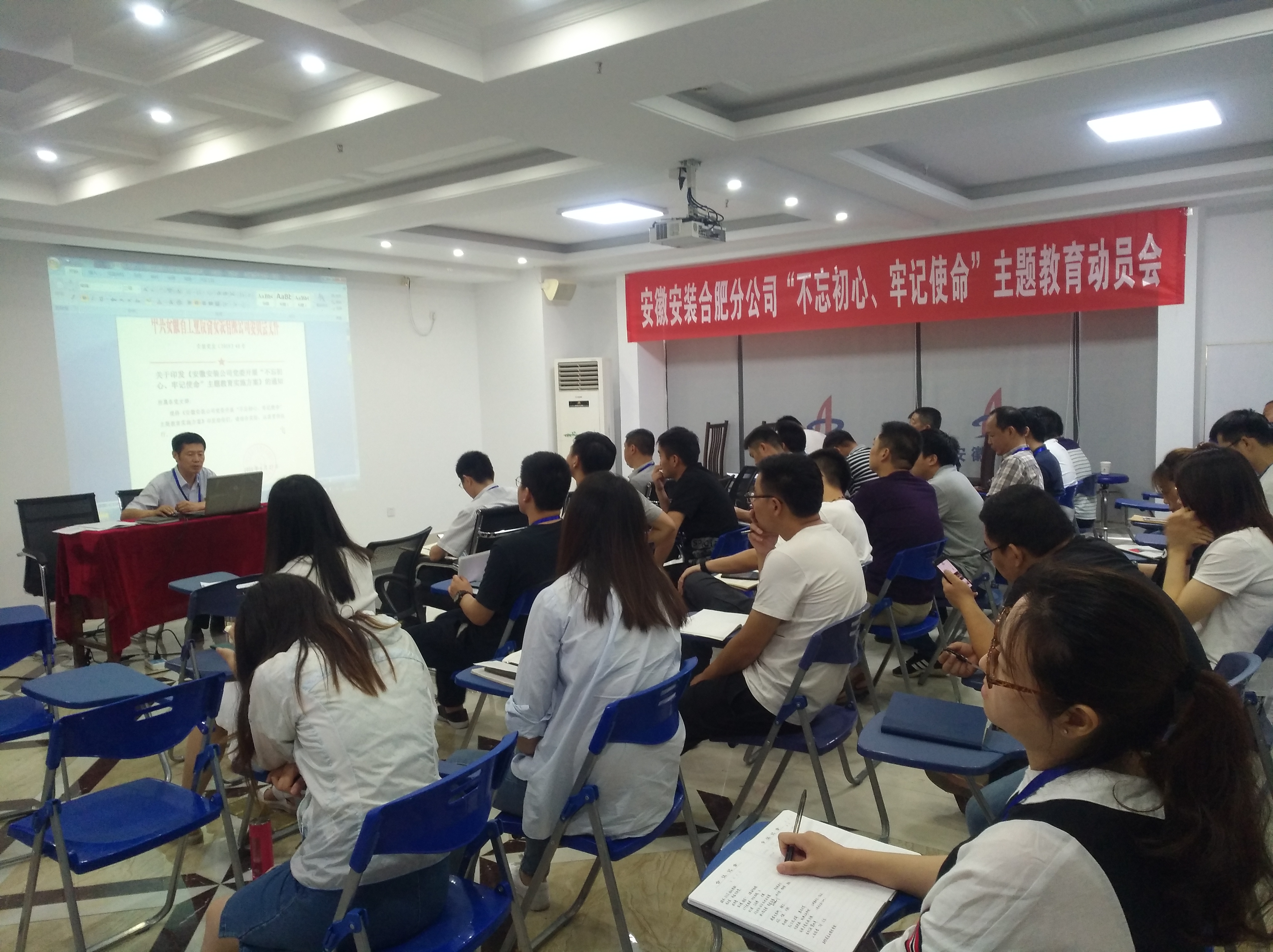 為深入開展“不忘初心,牢記使命”主題教育,6月28日上午,合肥分公司黨支部在公司十五樓職工之家召開了“不忘初心、牢記使命”主題教育動(dòng)員會(huì)。分公司黨支部全體黨員、入黨積極分子以及分公司機(jī)關(guān)干部參加了會(huì)議,支部書記胡迎東主持會(huì)議。