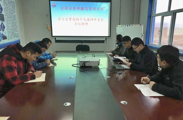按照公司黨委《關(guān)于做好黨的十九屆四中全會(huì)精神學(xué)習(xí)宣傳工作的通知》要求,11月13日上午,西北分公司黨支部結(jié)合工作實(shí)際,分別組織機(jī)關(guān)及新疆烏蘇中水回用項(xiàng)目部全體黨員干部群眾召開了理論學(xué)習(xí)會(huì),集中對(duì)黨的十九屆四中全會(huì)精神進(jìn)行學(xué)習(xí)宣貫。