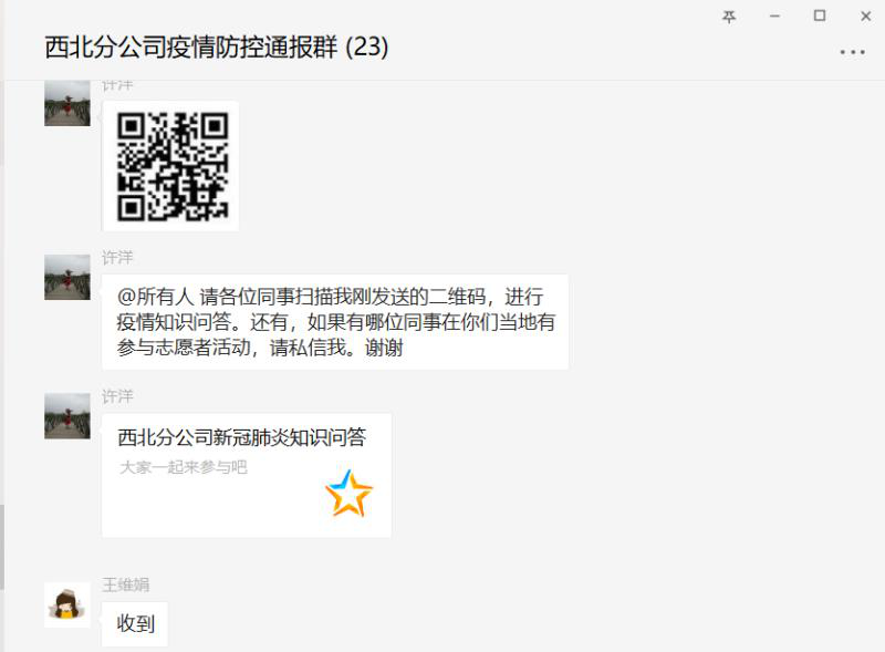 為提高廣大員工對新冠肺炎的了解,提高防控意識,掌握防控要點(diǎn),共同打贏疫情防控阻擊戰(zhàn),2月14日,西北分公司工會組織開展了新冠肺炎疫情防控知識網(wǎng)絡(luò)答題活動。