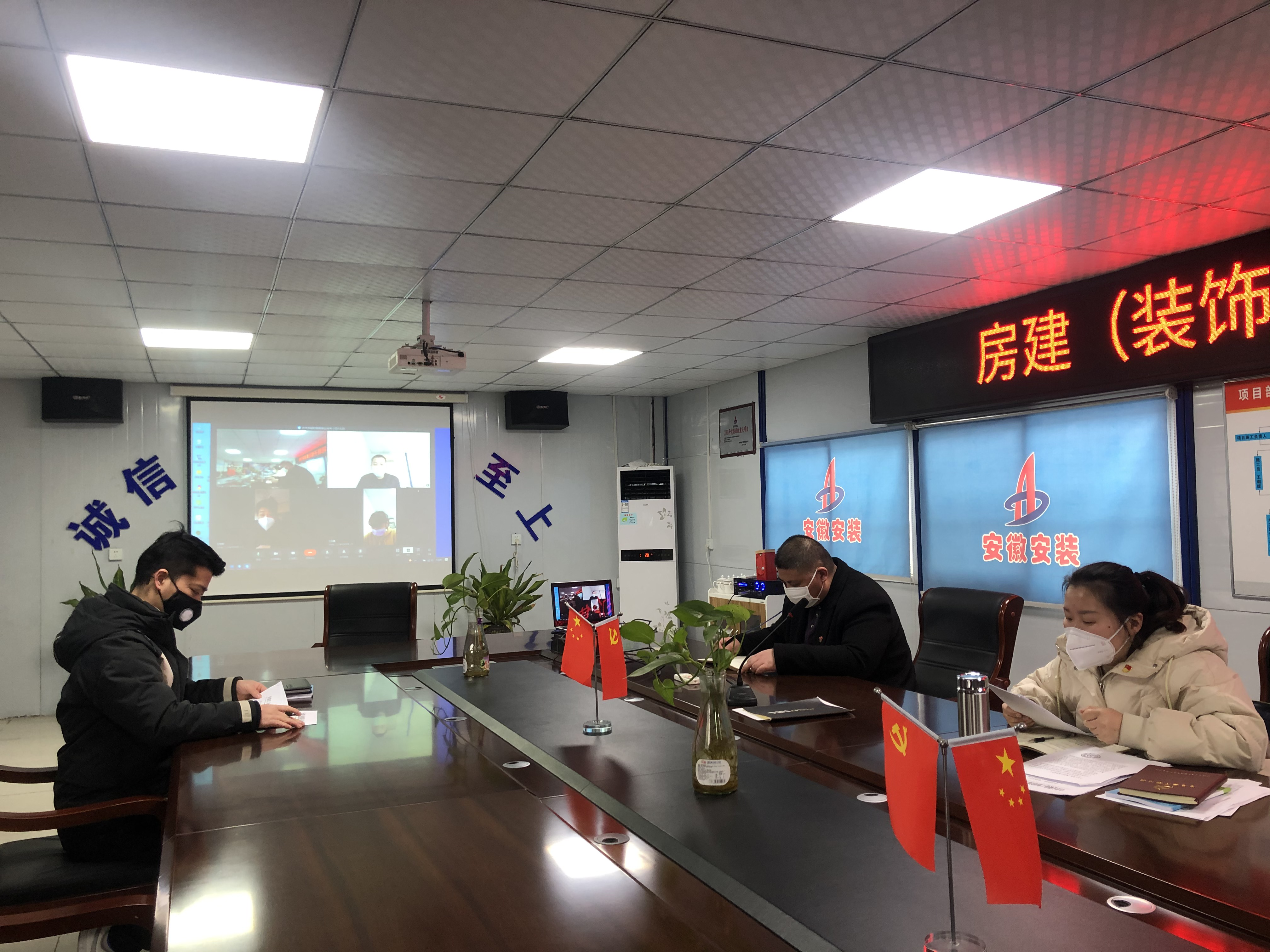 2月28日下午,房建(裝飾)分公司黨支部在阜陽潁東區(qū)中醫(yī)院建設(shè)PPP項目部會議室召開班子理論集體學習暨新冠肺炎疫情防控專題學習視頻會,分公司黨支部副書記張曼主持會議,分公司黨支部班子理論學習成員參加會議。