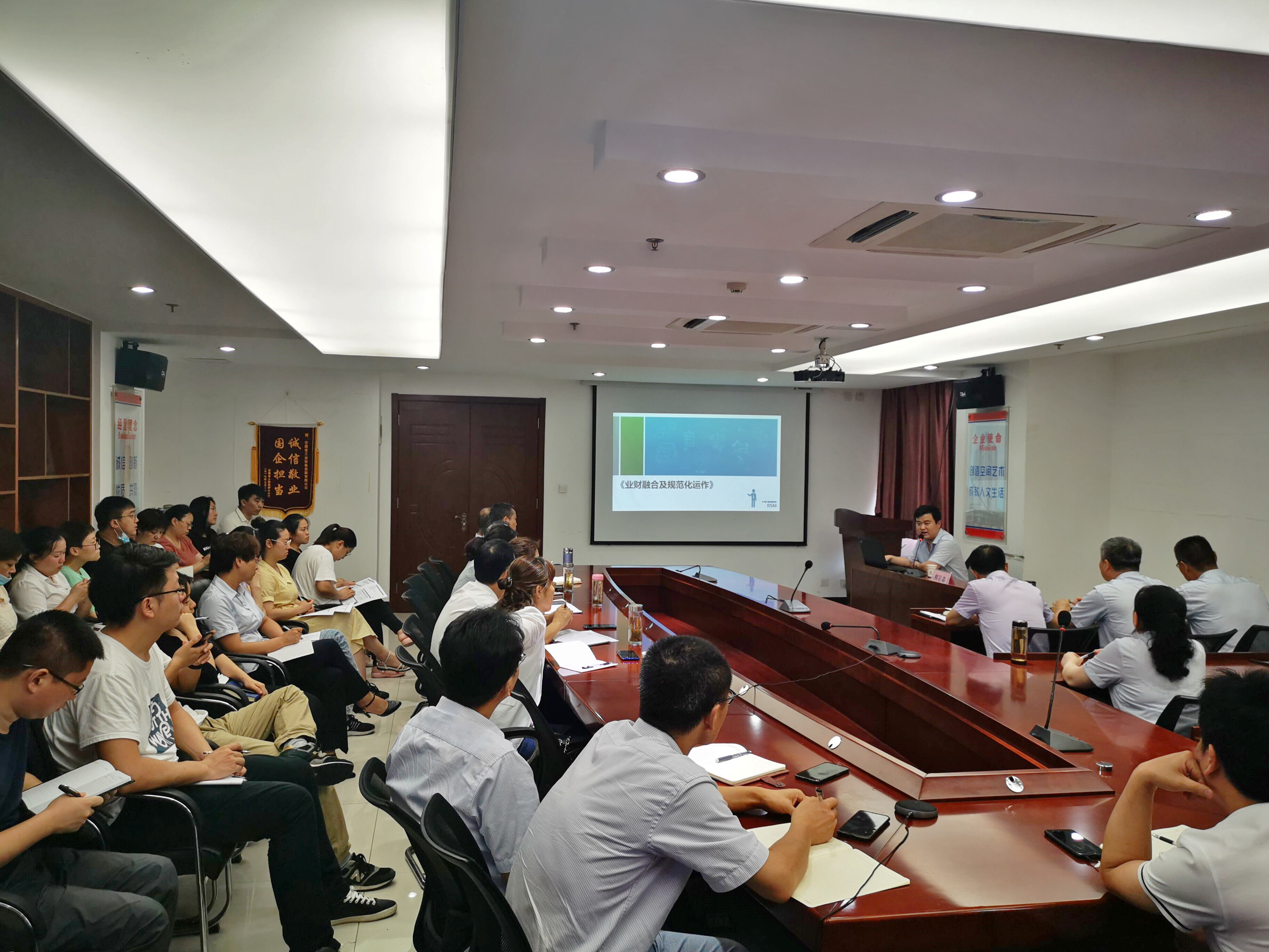 為全面推動公司“十四五”戰(zhàn)略規(guī)劃,促進(jìn)業(yè)務(wù)部門和財(cái)務(wù)部門深度融合,發(fā)揮公司內(nèi)部協(xié)同效應(yīng),提升公司整體管理水平,創(chuàng)造公司價值,助力實(shí)現(xiàn)可持續(xù)發(fā)展,公司人力資源部及財(cái)務(wù)部于6月30日下午在省安大講堂組織開展了業(yè)財(cái)融合及規(guī)范化運(yùn)作專項(xiàng)培訓(xùn)。本次培訓(xùn)聘請了安徽建工集團(tuán)財(cái)報(bào)主審單位容誠會計(jì)師事務(wù)所業(yè)務(wù)總監(jiān)熊延森來公司授課,公司財(cái)務(wù)、審計(jì)、法務(wù)、工程管理部等多個部門及在肥分公司主要領(lǐng)導(dǎo)和相關(guān)人員共60余人參加了培訓(xùn),公司紀(jì)委書記、工會主席李寬旭,副總經(jīng)理李原,總會計(jì)師張?jiān)蠹翱偣こ處焻抢^成蒞臨培訓(xùn)現(xiàn)場,異地分公司領(lǐng)導(dǎo)及相關(guān)部門人員通過遠(yuǎn)程視頻在線參加了培訓(xùn)。