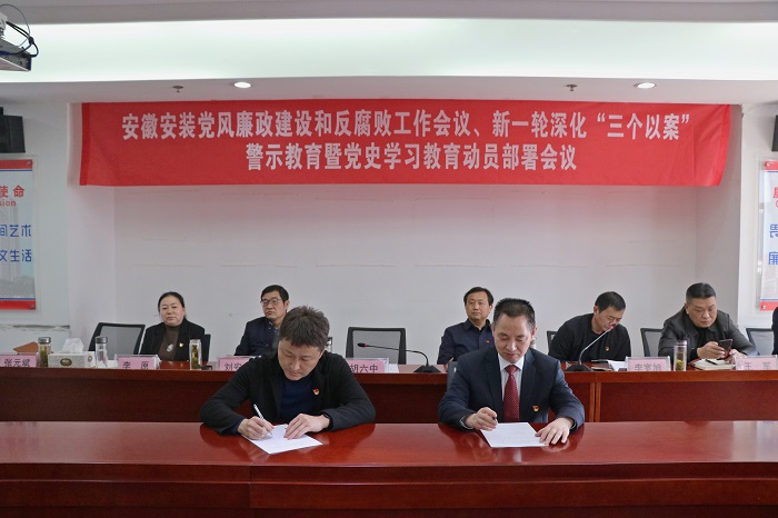 期間,公司黨委與所屬各黨支部簽訂了《黨風(fēng)廉政建設(shè)責(zé)任書(shū)》,公司中層管理人員簽訂了《廉潔自律承諾書(shū)》。會(huì)議以現(xiàn)場(chǎng)加視頻形式召開(kāi)。公司領(lǐng)導(dǎo)班子成員、機(jī)關(guān)中層管理人員、在肥地區(qū)分公司領(lǐng)導(dǎo)班子成員及機(jī)關(guān)全體黨員在主會(huì)場(chǎng)參會(huì);所屬分公司領(lǐng)導(dǎo)班子成員在視頻分會(huì)場(chǎng)參會(huì)。
