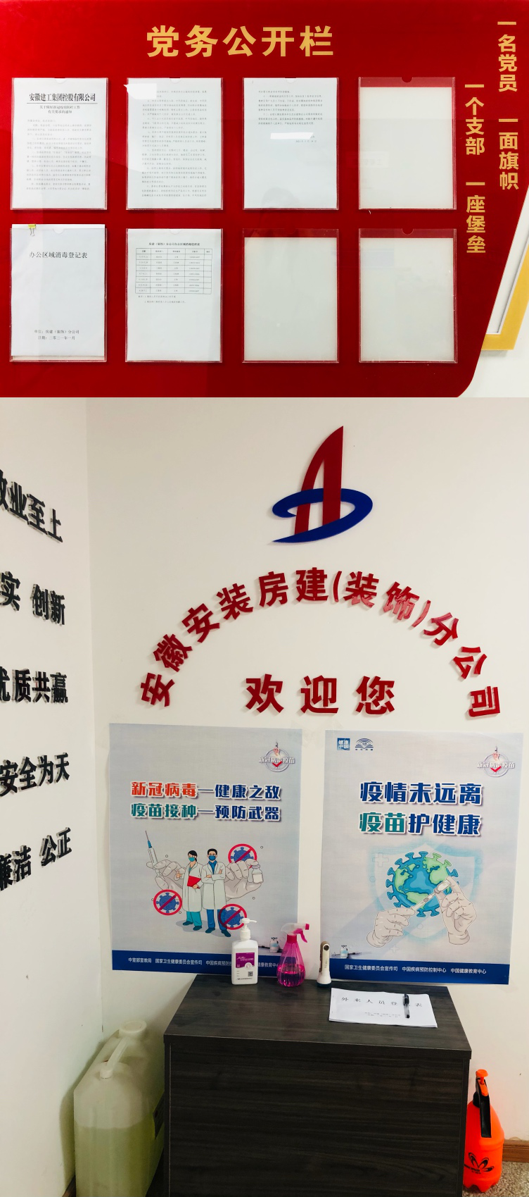近期,安徽安裝房建(裝飾)分公司黨支部迅速落實(shí)集團(tuán)公司黨委和公司黨委疫情防控有關(guān)工作部署,針對(duì)分司機(jī)關(guān)及所屬各項(xiàng)目疫情防控工作作出具體要求:一是要分公司機(jī)關(guān)、各項(xiàng)目部針對(duì)來訪人員及時(shí)做好測溫、登記工作;二是要加強(qiáng)辦公區(qū)、項(xiàng)目食堂等人員易集中區(qū)域的日常衛(wèi)生消殺工作;三是要積極做好疫苗接種宣傳工作,合理安排組織職工就近接種疫苗;四是要合理安排好項(xiàng)目食堂就餐時(shí)間,分批次、分時(shí)間段組織項(xiàng)目現(xiàn)場人員就餐,避免人員過度集中;五是要統(tǒng)籌做好疫情期間日常防護(hù)和生產(chǎn)經(jīng)營工作。