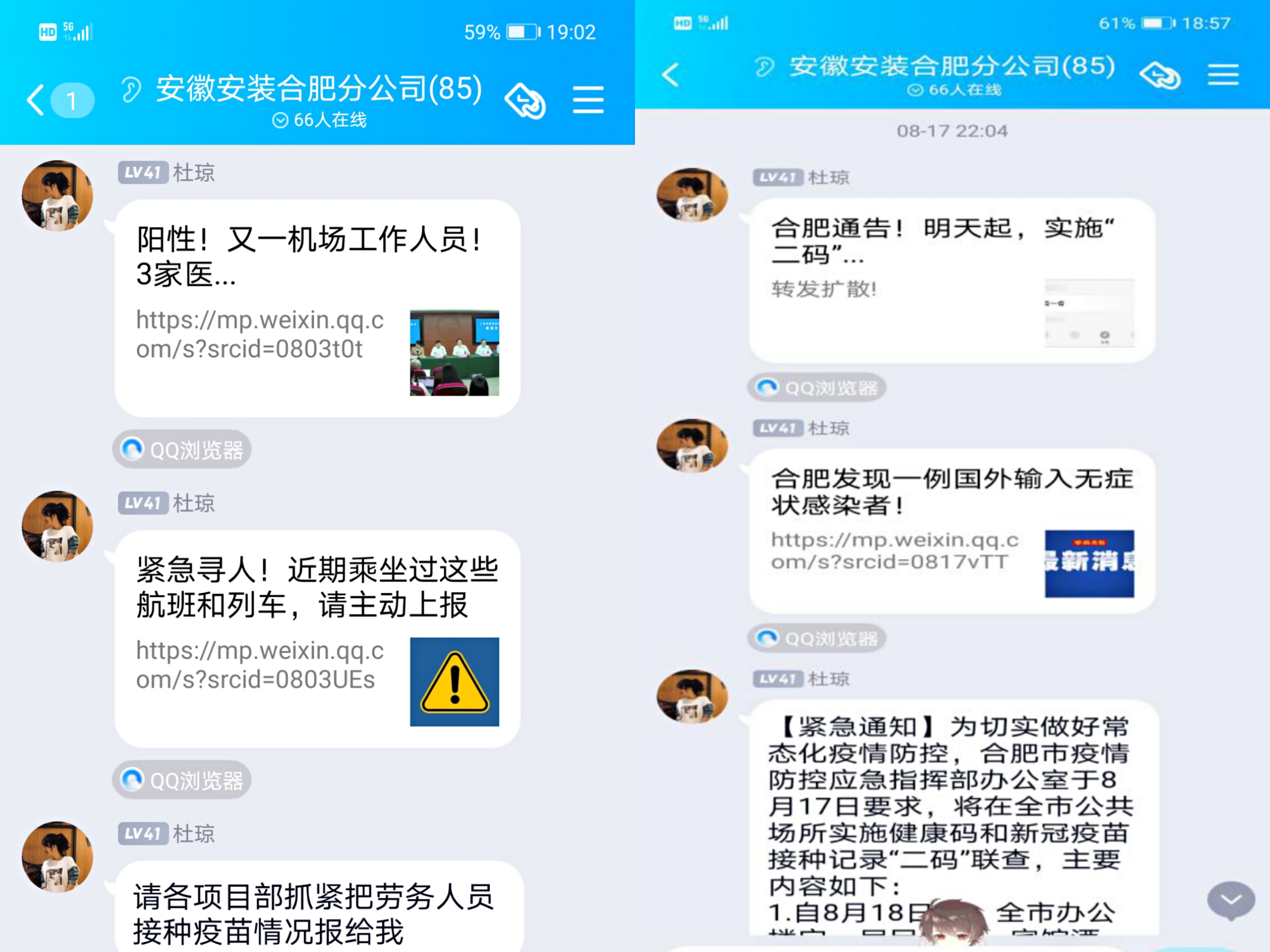 分公司工作群中發(fā)布疫情動(dòng)態(tài)