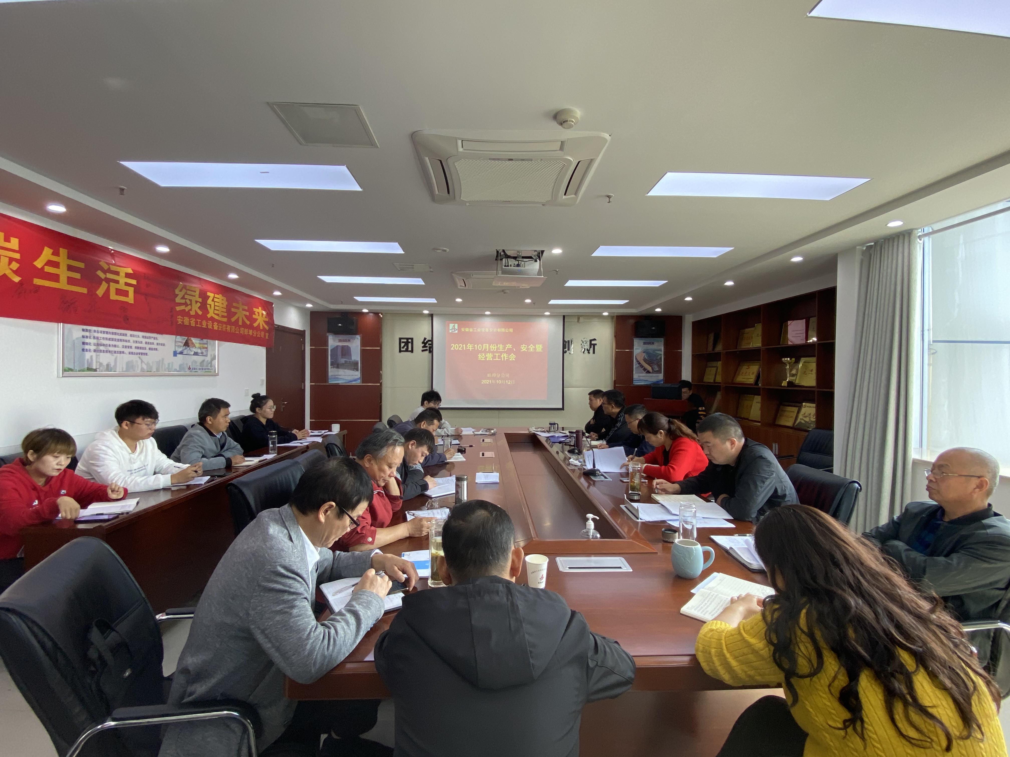 10月12日上午,蚌埠分公司組織召開10月份生產(chǎn)、安全暨經(jīng)營工作會議,分公司領(lǐng)導(dǎo)班子成員、部門負(fù)責(zé)人、各在建項目經(jīng)理及工程管理部全體員工參會。