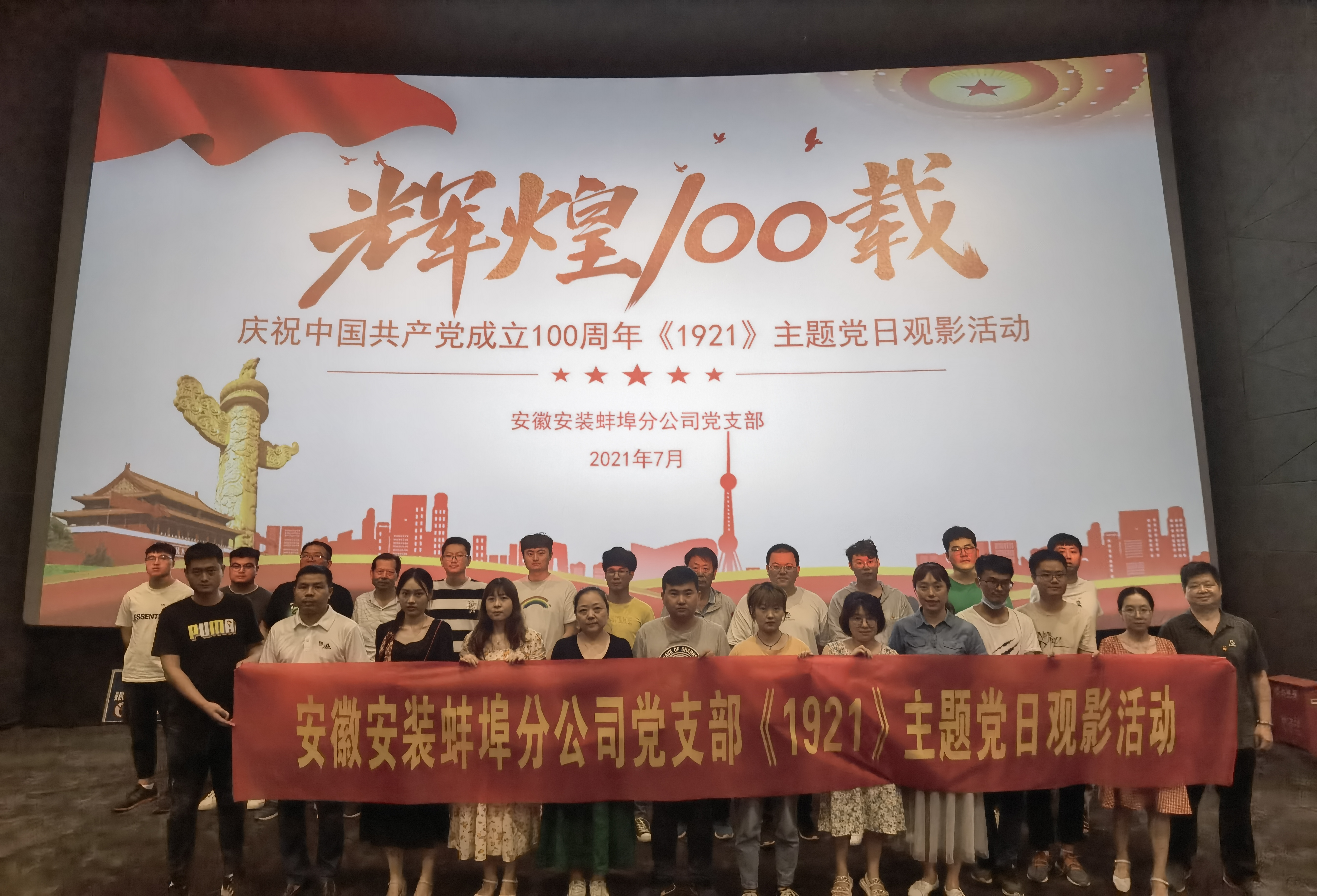 在慶祝中國(guó)共產(chǎn)黨成立百年之際,為進(jìn)一步推進(jìn)黨史學(xué)習(xí)教育,堅(jiān)定理想信念,7月2日下午,蚌埠分公司黨支部組織支部黨員、分公司機(jī)關(guān)及部分項(xiàng)目員工開展了開展《1921》主題黨日觀影活動(dòng)。