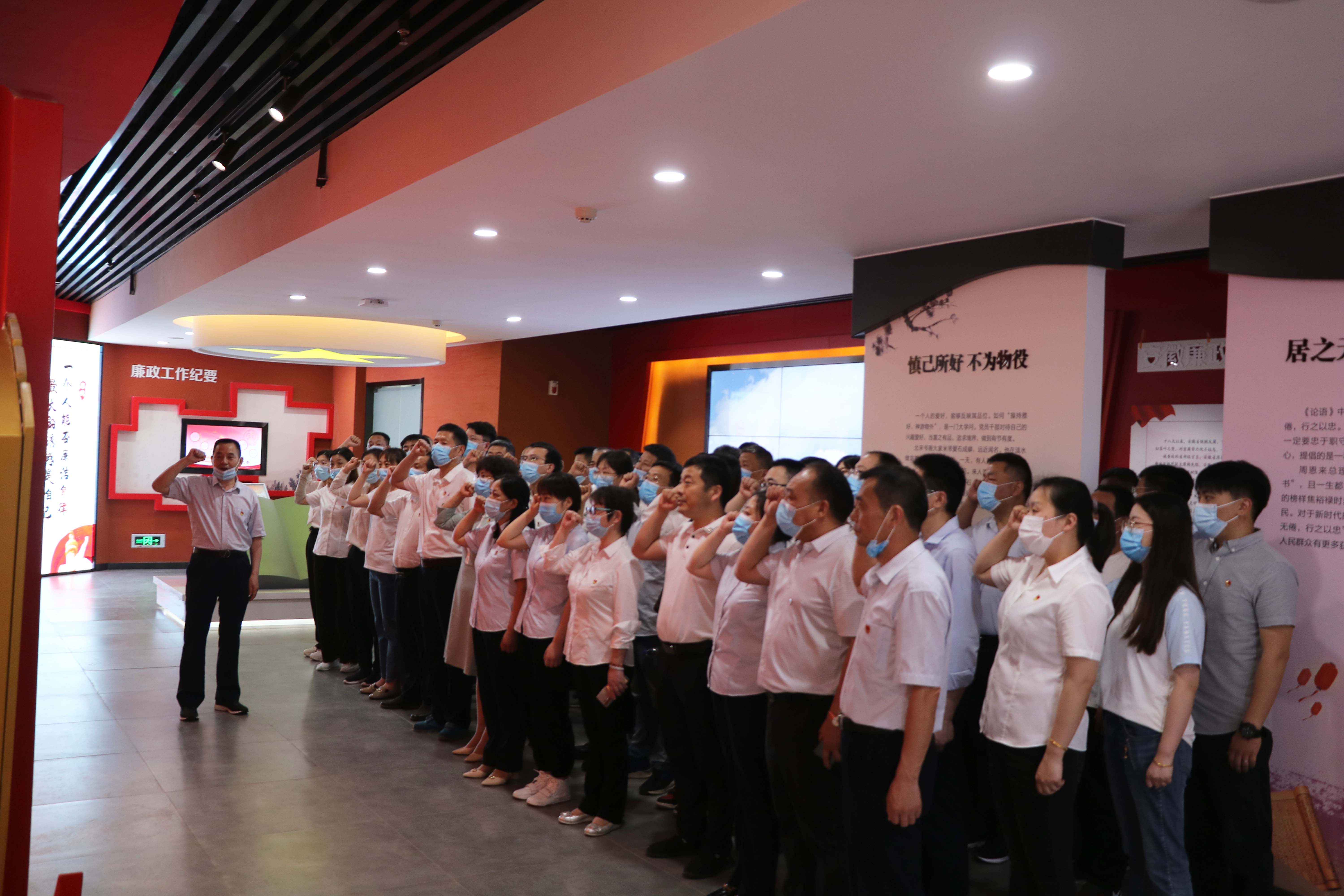 瑤海區(qū)人民法院廉政文化館共兩層,內(nèi)容分為“廉政文化館”“法治文化教育館”和“院史陳列館”三個篇章,綜合運(yùn)用展板、實(shí)物、雕塑、場景、聲光電等多種形式,將歷史與現(xiàn)實(shí)緊密結(jié)合,多角度、大縱深地闡釋廉潔文化這一主題。在一樓警示教育報告廳里,在講解員的解說下,大家依次參觀了鑒史問廉、廉政故事、貪腐之害、時光隧道、廉潔豐碑、廉政成果、廉政文章、廉政寄語八大板塊,參觀過程中大家仔細(xì)聆聽,細(xì)細(xì)研讀,通過展廳內(nèi)文字、實(shí)物、整合的典型圖文資料、影音影像等,深入學(xué)習(xí)了廉政文化、中國共產(chǎn)黨反腐倡廉歷史、安徽省反腐倡廉實(shí)踐等內(nèi)容,大家在視覺、聽覺上接受了一堂全面生動的反腐倡廉警示教育課?;顒悠陂g,公司黨委書記、董事長胡六中帶領(lǐng)在場全體黨員集體重溫入黨誓詞。