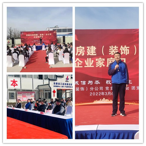 為進(jìn)一步加強(qiáng)分公司與職工家屬間的溝通與交流,積極營造職工安心、家庭放心、事業(yè)順利的良好氛圍,3月6日,房建(裝飾)分公司在潤迅數(shù)據(jù)中心(合肥)產(chǎn)業(yè)園項(xiàng)目組織開展企業(yè)家屬日活動。公司紀(jì)委書記、工會主席李楊,副總經(jīng)理趙伯平應(yīng)邀出席活動,分公司經(jīng)理許杰、黨支部書記王偉以及來自各基層項(xiàng)目的職工及其家屬參加活動。