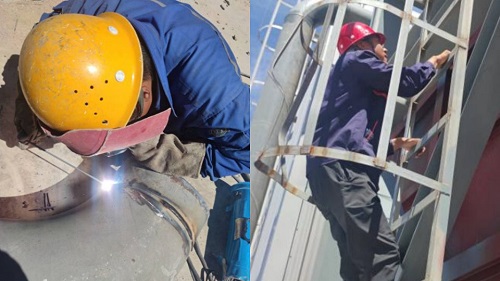 圖為甘肅西部鑫宇項目管道配管焊接及水箱焊接檢查場景