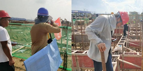 圖為花園大道道路工程項目現(xiàn)場臨時用電檢查及登高架焊接場景