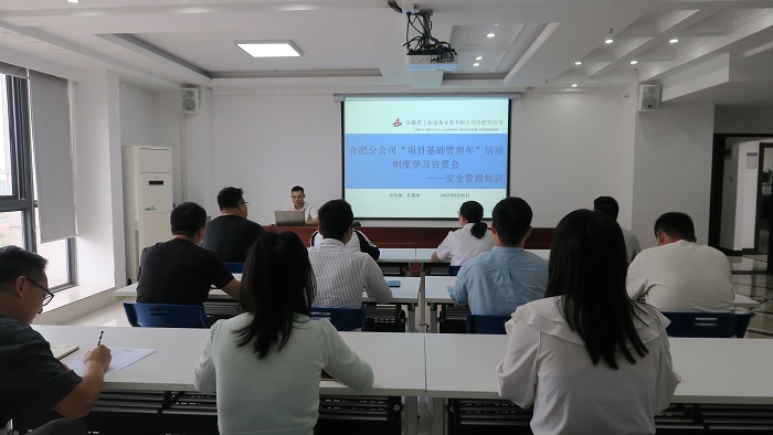 根據(jù)合肥分公司“項(xiàng)目管理年”活動(dòng)學(xué)習(xí)培訓(xùn)計(jì)劃安排,9月20日下午,分公司組織開展了第五期“項(xiàng)目管理年”活動(dòng)制度學(xué)習(xí)會(huì),由分公司安全管理部負(fù)責(zé)人孔微明講授安全管理相關(guān)知識(shí)。分公司領(lǐng)導(dǎo)班子成員、機(jī)關(guān)員工以及項(xiàng)目部安全員參會(huì)。