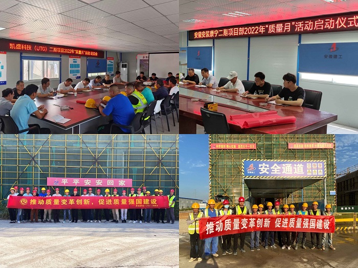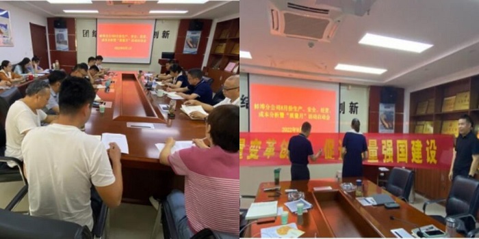 二是營造良好活動(dòng)氛圍。9月2日-9月5日,分公司所屬項(xiàng)目部迅速召開2022年“質(zhì)量月”動(dòng)員會(huì),并通過電子屏幕、橫幅標(biāo)語等形式宣傳“質(zhì)量月”活動(dòng)主題,為質(zhì)量月活動(dòng)開展?fàn)I造了良好氣氛。