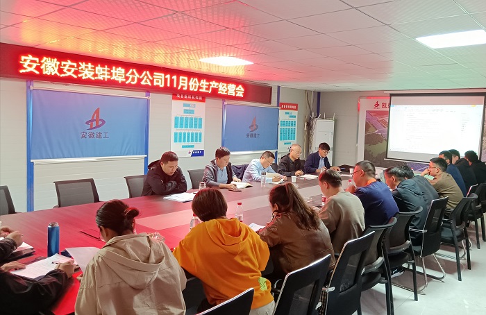 11月10日,蚌埠分公司在凱盛項(xiàng)目部召開11月份生產(chǎn)經(jīng)營(yíng)會(huì)。分公司領(lǐng)導(dǎo)班子成員、各項(xiàng)目主要負(fù)責(zé)人、機(jī)關(guān)各部門負(fù)責(zé)人及工程部全體員工參加會(huì)議,會(huì)議由分公司副經(jīng)理郭洋主持。
