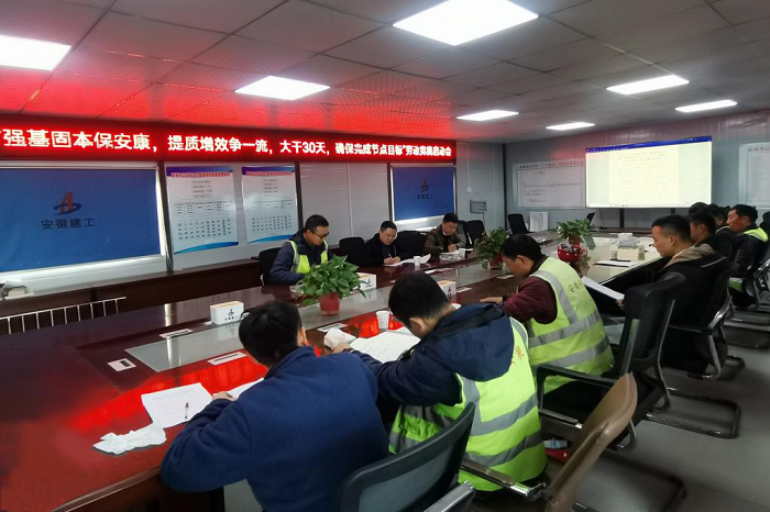 為持續(xù)貫徹落實(shí)集團(tuán)公司“強(qiáng)基固本保安康,提質(zhì)增效爭(zhēng)一流”主題勞動(dòng)競(jìng)賽活動(dòng)精神,11月25日上午,蚌埠分公司蚌埠市公安局“三個(gè)基地”項(xiàng)目部召開(kāi)“強(qiáng)基固本保安康,提質(zhì)增效爭(zhēng)一流,大干30天,確保完成節(jié)點(diǎn)目標(biāo)”勞動(dòng)競(jìng)賽啟動(dòng)會(huì)。分公司經(jīng)理、黨支部副書(shū)記趙銘亮,黨支部書(shū)記、副經(jīng)理王偉,項(xiàng)目部全體管理人員及施工班組代表參加會(huì)議。