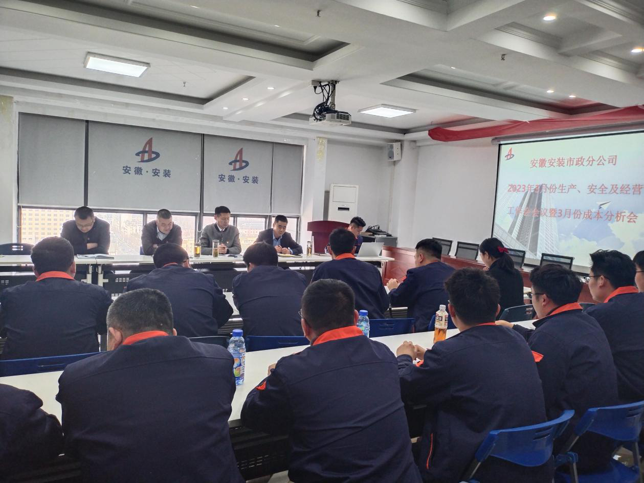 3月4日下午,市政分公司在公司十五樓職工之家組織召開分公司2023年3月份生產(chǎn)、安全及經(jīng)營工作會議暨月份成本分析會,分公司領導班子成員、部門及項目部全體人員參會,會議由分公司副經(jīng)理張漢軍主持。
