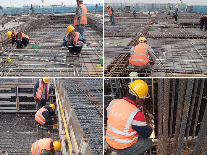 五一期間,安徽安裝合肥分公司新橋國際機場T2航站樓南北指廊機電安裝工程項目工地現(xiàn)場正如火如荼進行電氣管道預(yù)埋和防雷接地焊接工作,項目部精益求精,嚴格要求,緊抓安全質(zhì)量不放松,穩(wěn)步推進項目進度,為階段性施工任務(wù)的按時完成奠定了堅實基礎(chǔ)。