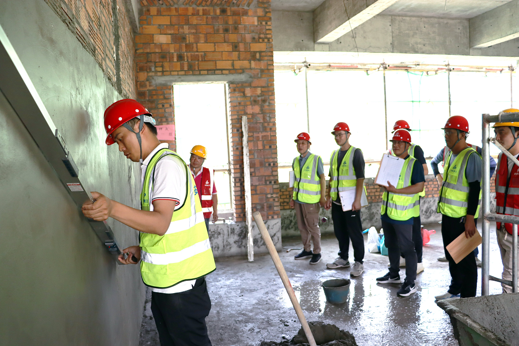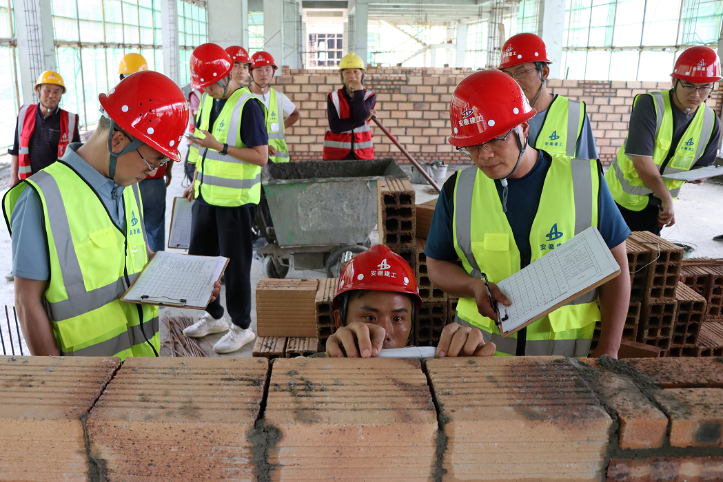 此次技能大賽選在阜南一小項(xiàng)目施工現(xiàn)場實(shí)際作業(yè)面進(jìn)行比賽,即避免了砌筑抹灰成品的浪費(fèi),真正將技能競賽做實(shí)做細(xì),又大大提升了全員的施工質(zhì)量意識(shí),達(dá)到了提升勞務(wù)隊(duì)伍專業(yè)技能,弘揚(yáng)工匠精神,以賽促效、以賽促建的目的,整個(gè)比賽時(shí)限為2個(gè)小時(shí)。最終,評(píng)委組通過“看、摸、敲、照、靠、量、吊、套”,從完成度、觀感質(zhì)量、垂直度、平整度及文明施工等規(guī)范要求方面進(jìn)行現(xiàn)場綜合打分,并分別評(píng)選出一、二等獲獎(jiǎng)和優(yōu)勝參賽隊(duì)。