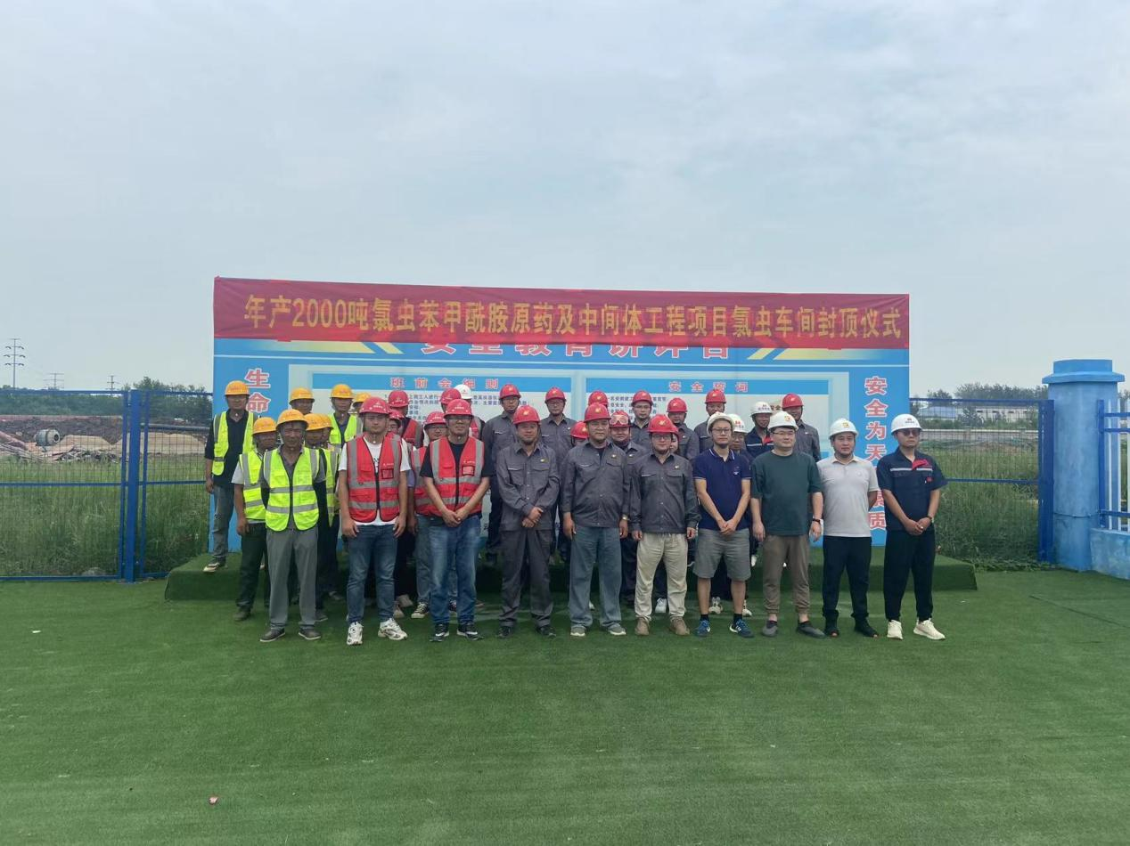 8月31日,蚌埠市淮上區(qū)化工園區(qū)內(nèi)年產(chǎn)2000噸氯蟲苯甲酰胺原藥及中間體項(xiàng)目氯蟲一號(hào)車間,伴隨著最后一方混凝土澆筑到位,聳立的車間主體被“封頂大吉”的大紅條幅和紅色祝福標(biāo)語(yǔ)裝點(diǎn)得格外喜慶!建設(shè)單位、監(jiān)理單位、施工單位等共同參加了封頂儀式。