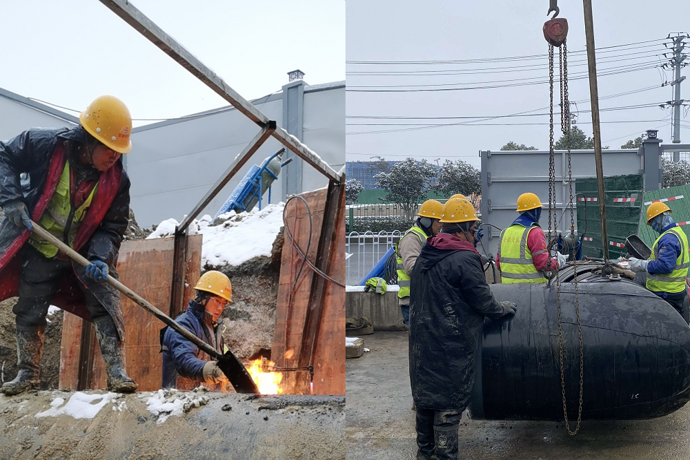 在新橋機(jī)場S1線(合淮路段)熱力管網(wǎng)項目上,項目部參戰(zhàn)人員正在凌風(fēng)踏雪,鉚足干勁加油干,目前項目施工已完成98%。為了沖刺月底前全面完成施工任務(wù)這一目標(biāo),項目部建設(shè)者們不畏艱辛、拼搏向前,正在用生動實(shí)踐和奮斗姿態(tài)詮釋著“特別能吃苦、特別能戰(zhàn)斗”的企業(yè)作風(fēng)。