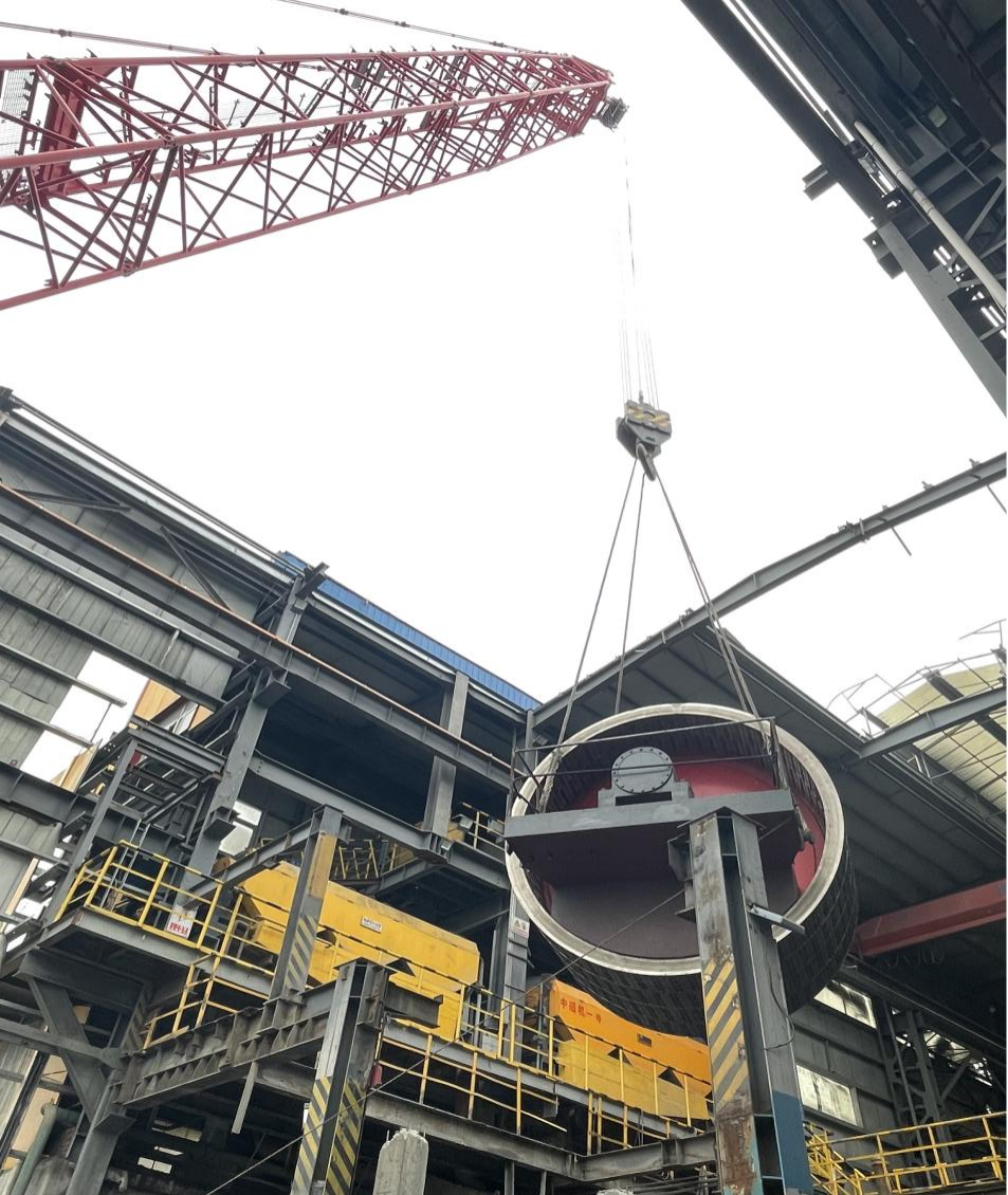 現(xiàn)場強(qiáng)磁機(jī)共3臺(tái),最大單體配件重量為81噸,最遠(yuǎn)吊裝半徑大達(dá)28米,全部安裝在老廠房內(nèi),吊裝精度要求高,如何保證設(shè)備構(gòu)件在吊裝時(shí)不發(fā)生扭曲變形是工程的重點(diǎn)、難點(diǎn)。整個(gè)吊裝過程中,項(xiàng)目團(tuán)隊(duì)通力合作,精心策劃,科學(xué)組織,合理安排,3臺(tái)強(qiáng)磁選機(jī)吊裝的順利完成,為后續(xù)安裝工作打下了堅(jiān)實(shí)基礎(chǔ)。