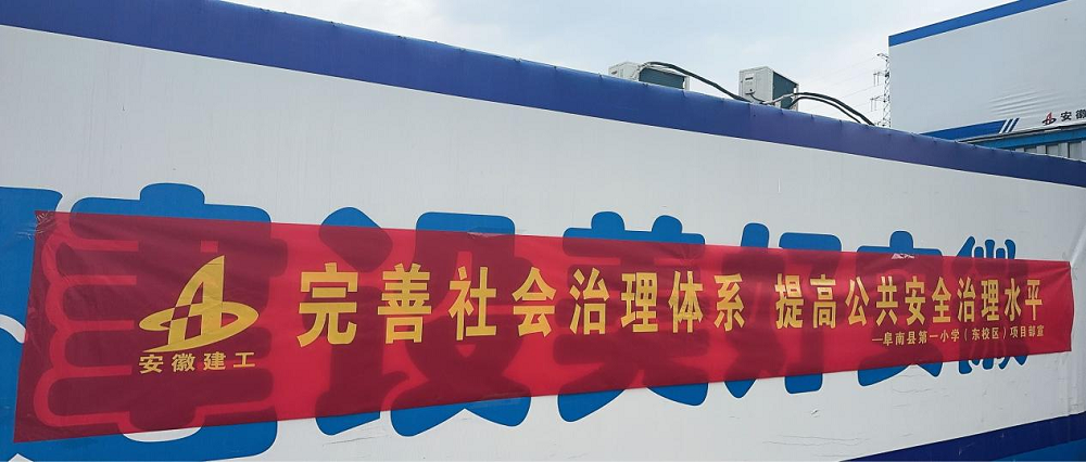 項(xiàng)目部懸掛宣傳橫幅、擺放宣傳展板