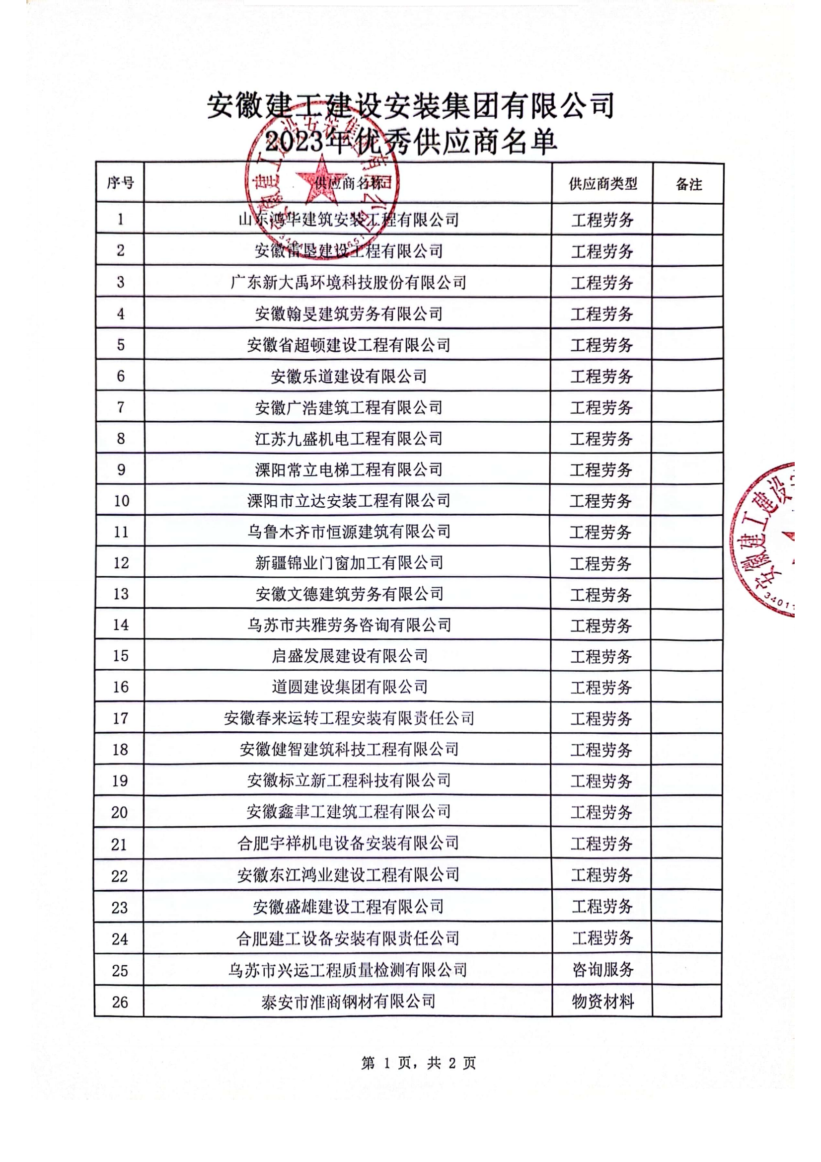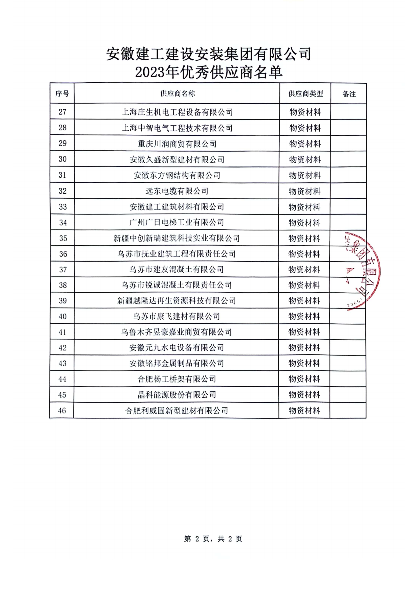 關(guān)于公布2023年度公司優(yōu)秀供應(yīng)商的通知