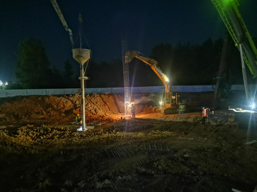 時(shí)間緊、任務(wù)重,為了全速推進(jìn)施工進(jìn)度,項(xiàng)目部堅(jiān)持每天召開“碰頭會(huì)”,解決當(dāng)天施工現(xiàn)場各種問題,不斷優(yōu)化施工組織方案,保障資源配置,把任務(wù)分解到天、具體到點(diǎn),明確責(zé)任人,采取增大工作面、增加施工班組人員和機(jī)械等有效措施加快施工進(jìn)度,加班加點(diǎn)施工,進(jìn)入連續(xù)作戰(zhàn)狀態(tài),奏響了“白+黑”不停歇的沖刺戰(zhàn)歌。目前,在項(xiàng)目部的連續(xù)奮戰(zhàn)和努力下,六鋼大廈酒店基礎(chǔ)部位旋挖灌注樁澆筑已完成,11-7軸/a-d軸開挖完成。正處于樁基承臺(tái)施工階段。