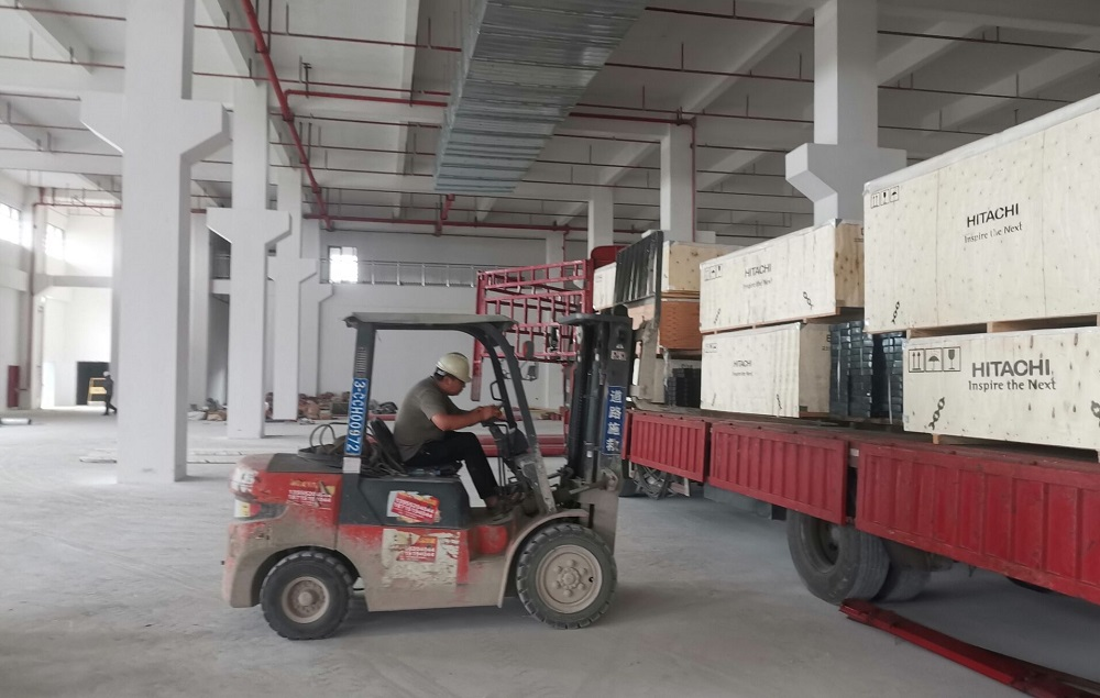 臨港科創(chuàng)園項目現(xiàn)場安裝人員正在進(jìn)行電梯卸貨
