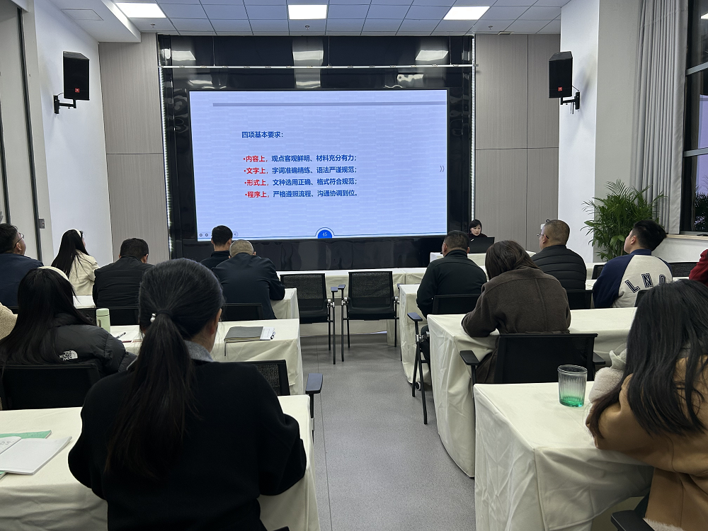 黃俊筠圍繞“日常辦公制度、常見公文寫作要點(diǎn)、商務(wù)禮儀”等方面內(nèi)容,重點(diǎn)解讀了業(yè)務(wù)接待、差旅費(fèi)、跟進(jìn)督辦等日常辦公制度。結(jié)合自身工作體會,黃俊筠用豐富的課件內(nèi)容,由淺入深地講解了常用公文的寫作技巧和接待工作的基本禮儀,并以實(shí)際案例分析工作中容易出現(xiàn)的問題和疏漏的細(xì)節(jié),提出改進(jìn)的方法。