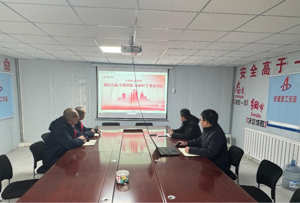 近日,建工安裝新疆烏蘇分公司召開專題學(xué)習(xí)會(huì),傳達(dá)學(xué)習(xí)宣貫集團(tuán)核心價(jià)值觀,會(huì)議以現(xiàn)場(chǎng)+視頻方式召開,分公司黨支部書記、經(jīng)理李磊主持會(huì)議,分公司領(lǐng)導(dǎo)班子成員、機(jī)關(guān)及項(xiàng)目人員參加。