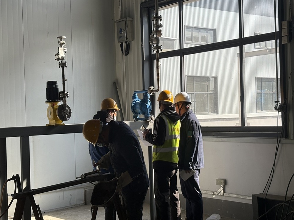 施工人員正在進行圖紙核對及管道焊接