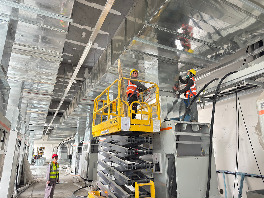 青海高原,氣候惡劣,環(huán)境艱苦,高寒缺氧,但這些困難并沒(méi)有阻擋項(xiàng)目部全體成員奮斗的步伐。施工現(xiàn)場(chǎng),機(jī)器轟鳴聲此起彼伏,工人們頭戴安全帽,身系安全繩,操作著各種設(shè)備,熟練地進(jìn)行著防水卷材敷設(shè)、吊頂板安裝、鋼筋綁扎、外墻抹灰、風(fēng)管安裝等作業(yè),每個(gè)環(huán)節(jié)都緊張有序,環(huán)環(huán)相扣。項(xiàng)目管理人員穿梭在各個(gè)施工點(diǎn),緊盯現(xiàn)場(chǎng)安全與質(zhì)量,及時(shí)協(xié)調(diào)解決施工中遇到的問(wèn)題,他們?nèi)硇牡赝度氲焦ぷ髦校脤I(yè)的素養(yǎng)和嚴(yán)謹(jǐn)?shù)膽B(tài)度為項(xiàng)目建設(shè)保駕護(hù)航。